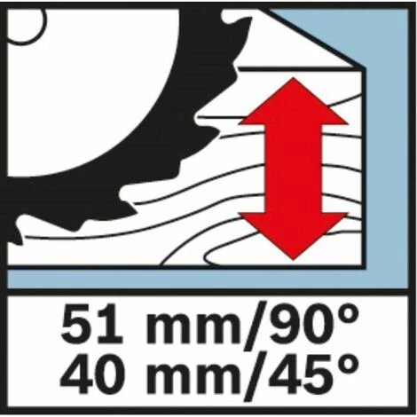 Max. Schnittkapazität in Holz (45°): 40 mm