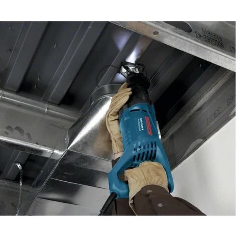 Säbelsäge GSA 1100 E. Optimale Sicht in jeder Arbeitssituation. Integrierte LEDs für bessere Sicht auf das Werkstück. Kraftvoller 1.100-W Motor für schnellen Sägefortschritt. Metallhaken zum Einhängen des Gerätes während einer Arbeitsunterbrechung. SDS-Sägeblattwechsel für schnellen und komfortablen Blattwechsel. Gummiertes Getriebegehäuse für sicheres und angenehmes Greifen. Handwerkerkoffer (2 610 956 923). 1 x Säbelsägeblatt S 2345 X. Progressor for Wood (separat erhältlich als 2er-Pack: 2 608 654 403). 1 x Säbelsägeblatt S 123 XF. Progressor for Metal (separat erhältlich als 2er-Pack: 2 608 654 416).