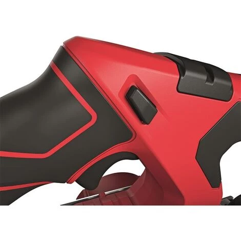 - Doppelt geklemmtes Schwenkelement verhindert ein Verklemmen des Sägeblattes bei Winkelschnitten und somit die Rückschlaggefahr