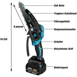 - Wiederaufladbare elektrische Kettensäge, leicht und tragbar, lange Akkulaufzeit, keine Rindenschäden