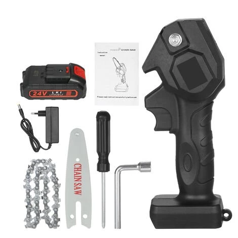 Starkes dynamisches System – 24-V-Akku-Kettensäge übernehmen alle Kupfermotoren, die verlustfrei starke Leistung liefern können, um die Schneidleistung höher und schneller zu machen. Eine Lithiumbatterie mit großer Kapazität kann ausreichend Strom liefern und kontinuierlich im Freien arbeiten.