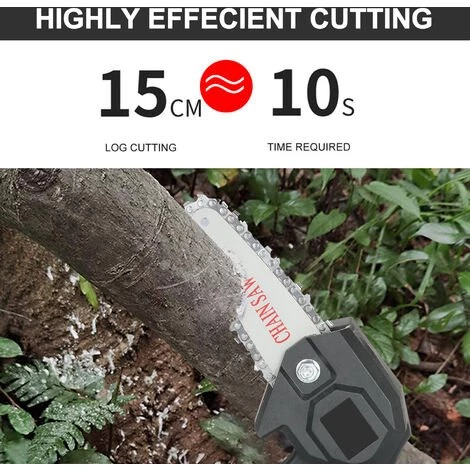 Hocheffizientes Schneiden – Importierte hochwertige Legierungskette, verschleißfest und langlebig, schneller und glatter Schnitt mit 1/3 schnellerer Schnittgeschwindigkeit als gewöhnliche Kettensägen, die innerhalb von 10 Sekunden ohne Beschädigung einen 15 cm langen Stamm schneiden können zur Rinde.