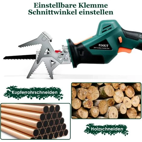 Ausgestattet mit 3 Sägeblättern für Holz und Metall.