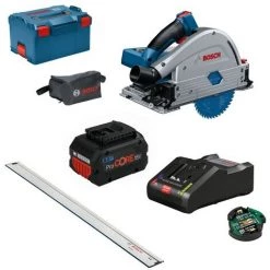 Bosch Akku-Tauchsäge BITURBO GKT 18V-52 GC, 1 X Kreissägeblatt, 2 X Akku, Ladegerät, Zubehör, L-BOXX