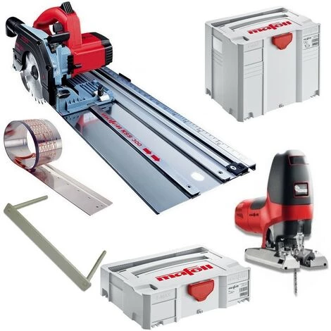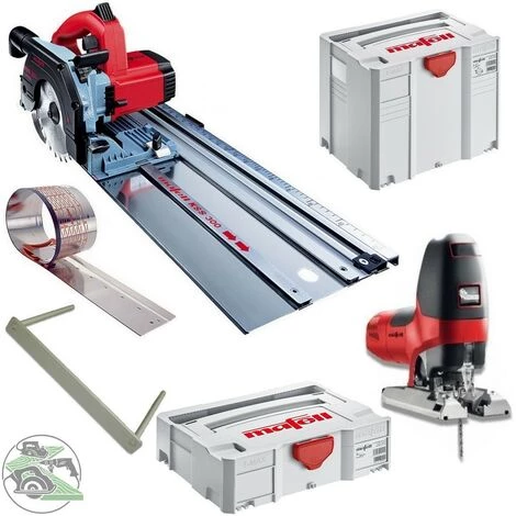 Hier haben wir ein Mafell Kapp-Sägesystem KSS 300 MaxiMax mit Flexi-Schiene 1400 mm und die Präzisionsstichsäge P1 cc MaxiMax inklusive 5 Jahre Sorglos-Paket im Angebot