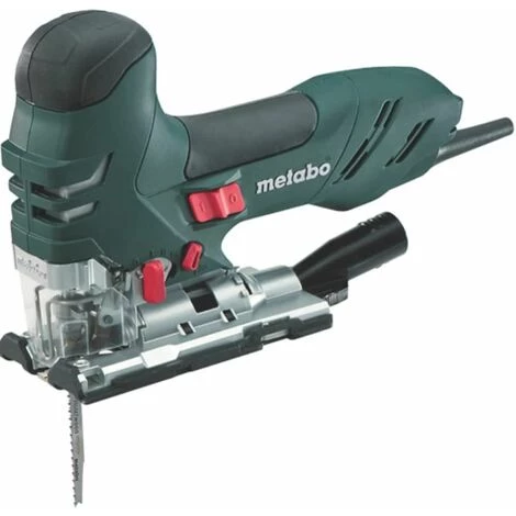 Stichsägen; Spannung 230 V, 50 Hz, schutzisoliert, funkentstört; Metabo Stichsägen schneiden kraftvoll in Holz, Buntmetall und Stahl. Alle Modelle sind mit einstellbarem Pendelhub für besonders hohe Schnittleistung, stufenloser Hubzahlregelung und 45°-schwenkbarer Fußplatte ausgestattet. Die Sägeblätter sind mittels Metabo ‚Quick‘-Sägeblatt-Schnellwechsel ohne Schlüssel auswechselbar. Eine Blaseinrichtung für freie Sicht auf die Schnittstelle ist zuschaltbar, Fremdabsaugung ist möglich; Passende Stichsägeblätter siehe Nr. 71130 und 71132; Modell STE 140 Plus; Holz bis 140 mm; Buntmetall/Stahl bis 35/10 mm; Hubzahl bei Leerlauf 1000 1/min; Leistungsaufnahme/-abgabe 750/420; Pendelbewegung 3-stufig stufig; Absaugstutzen ja; Gewicht 2,5 kg