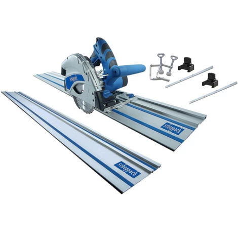 : SCHEPPACH Tauchsäge – 160mm – 1200W – PL55 : Leistungsstarker Motor mit 1200 W. Die Schiene ermöglicht es, das Sägeblatt parallel einzutauchen und die Säge gleichmäig weiter zu führen. Das Sägeblatt mit 24 Zähnen sorgt für einen sauberen Schnitt mit sehr wenig Splittern beim Schneiden von Laminaten. Der vollständig geschlossene Sägeblattschutz ermöglicht eine effektive Absaugung von Sägespänen. Die Schnitthöhe von 55 mm ermöglicht das Sägen und Anpassen der Länge der meisten Türgröen. Ermöglicht das Sägen verschiedenster Materialien wie Massivholz, Arbeitsplatten, beidseitig beschichtete MDF-Platten, Laminat etc. Präzise Schnitte in Arbeitsplatten, Massivholz, Laminat und Kunststoff. Handwerker empfehlen sie wegen ihres Bedienkomforts und ihrer Ausgewogenheit. inklusive 1 Schiene, 1 Schienenverbinder und 1 Kippschutz SCHEPPACH Führungsschiene für Tauchsägen CS55 – PL55 und PL75 – 1400mm – 4901802701 : Zusätzliche Stabilität Kompatibel mit den SCHEPPACH-Tauchsägen. Einfach zu installieren SCHEPPACH Zubehörset für Tauchsägen : Zusätzliche Stabilität Kompatibel mit SCHEPPACH Tauchsägen. Einfach zu installieren Merkmale: SCHEPPACH Tauchsäge – 160mm – 1200W – PL55 : Abmessungen L x B x H: 340 x 260 x 235 mm. Durchmesser des Sägeblatts: 160 mm Bohrung: 20 mm Drehzahl des Sägeblatts: 5500 min-1 Max. Schnitthöhe bei 90°: 55 mm Maximale Schnitthöhe bei 45°: 45 mm. Neigungsbereich von 0° bis 45°. Schattenfuge (Abstand zwischen Klinge und Wand): 16 mm Saugmund Innen- und Auendurchmesser: 35 /38 mm Motor: 240 V Aufgenommene Leistung: 1200 W Gewicht netto: 6,9 kg Referenz: 5901802915 SCHEPPACH Führungsschiene für Tauchsägen CS55 – PL55 und PL75 – 1400mm – 4901802701 : Abmessungen Länge: 1400 mm. Geeignet für Tauchsägen : CS55 – PL55 und PL75. Referenz : 4901802701 SCHEPPACH Zubehörset für Tauchsägen: Eine Verlängerung Zwei Schraubzwingen Ein Kippschutz Artikelnummer: 3901802702 Packung: SCHEPPACH-Paket: 1x Tauchsäge2x Schiene2x Kippschutz2x Kippschutz2x SchraubzwingeLieferung in Originalverpackung.