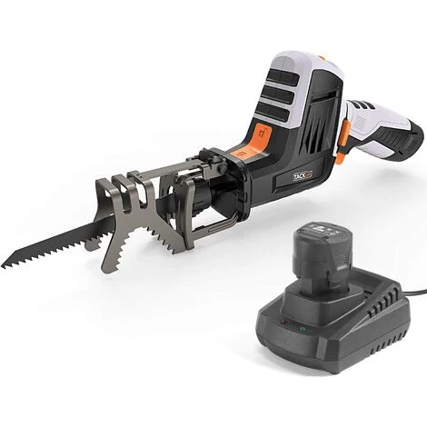 - 【Lieferumfang】1 x TACKLIFE Säbelsäge; 1 x 12V Max Lithium-Ionen Akku ; 1 x 1 Stunden Schnelladegerät; 1 x Sägeblatt zum Schneiden von Holz; 1 x Spannbacken; 1 x Bedienungsanleitung