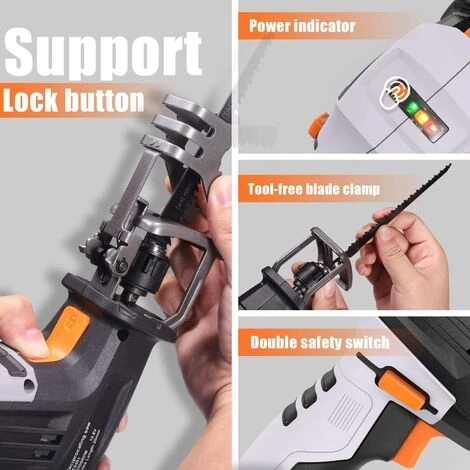 - 【Verstellbare Geschwindigkeit & Ladestandsanzeige】Verstellbare Geschwindigkeitsauslöser mit 0-2500 spm verspricht ihnen eine bessere Sägekontrolle. Die Ladestandsanzeige zeigt ihnen den aktuellen Ladezustand an und erinnert sie die Säge rechtzeitig zu laden um Arbeitsverzögerungen zu vermeiden