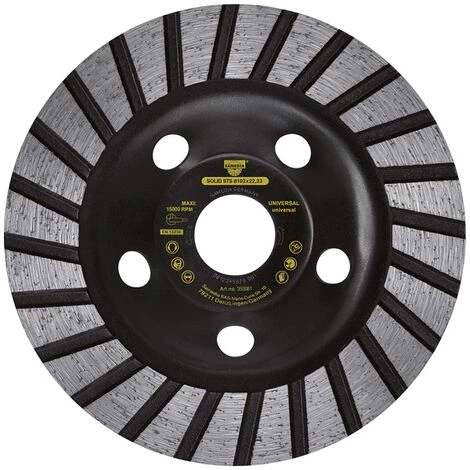 Technische SpezifikationenArt.-Nr.Durchmesser (mm)Bohrung (mm)Anzahl SegmenteGesamthöhe (mm)35006110022.2313,535006211022.2313,535006312522.2313,535006418022.2313,5