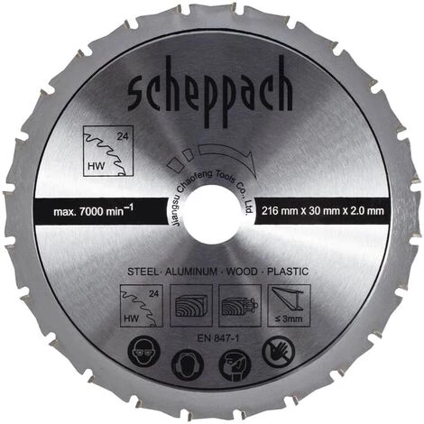 Scheppach Multifunktions Sägeblatt Ø216mmx2,0mmx30mm/24 Z HM90MP