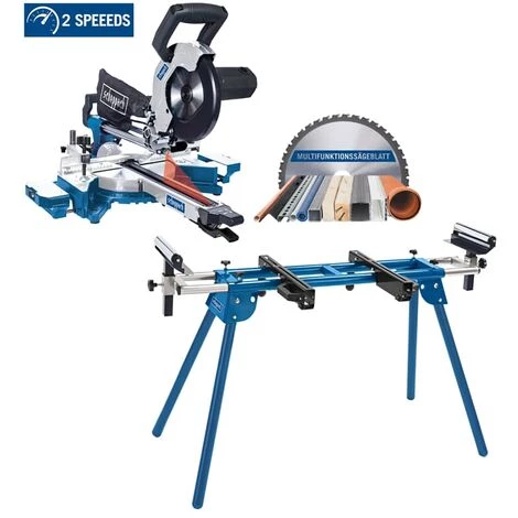 Die Scheppach Kapp-Zugsäge ist dank der einstellbaren Schnittgeschwindigkeiten ein echtes Universalgerät. Mit dem 216 mm Ø Multifunktionssägeblatt schneidet sie mühelos viele unterschiedliche Materialien wie Hart- und Weichholz, mit Nägeln gespicktes Holz, Kunststoffe, Kupfer, Aluminium und sogar Stahl.
