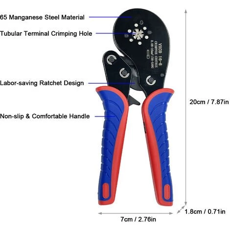 Geeignet für Rohrklemmen, 0,08-16 mm² (28-5 AWG) Crimpbereich, für verschiedene Arbeitsanforderungen.