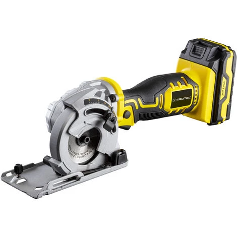 Das geringe Gerätegewicht und der ergonomisch geformte Griffbereich mit Softgrip-Einsätzen garantieren ein sicheres einhändiges Arbeiten – selbst über Kopf. Damit bei Über-Kopf-Arbeiten der erzeugte Staub nicht in die Augen gelangt, verfügt das Leichtgewicht über einen Adapter zum Anschluss einer optionalen Staubabsaugung. Ebenfalls im Lieferumfang bereits enthalten ist ein Parallelanschlag für exakte Sägeschnitte über die gesamte Schnittlänge. Eine dreistufige Akku-Kapazitätsanzeige informiert stets zuverlässig über die verbleibende Ausdauer des 20-V-Multiakkus mit seiner hohen Ladekapazität von 2 Ah. Zur schnellen Aufladung (1 h) ist ein Schnell-Ladegerät mit automatischer Ladeabschaltung im Standard-Lieferumfang enthalten. Abgerundet wird das Komplettset zum Sofort-Loslegen durch drei hochwertige Sägeblätter: ein HSS-Sägeblatt mit 44 Zähnen für die Bearbeitung von Aluminium und Leichtblechen, ein Diamant-Sägeblatt für Fliesen, Keramik oder Granit sowie ein vormontiertes TCT-Sägeblatt mit 24 Zähnen für Arbeiten mit Holz und Kunststoffen. Alles sofort griffbereit! Staub- und stoßsicher verpackt im handlichen Trotec-Werkzeugkoffer.